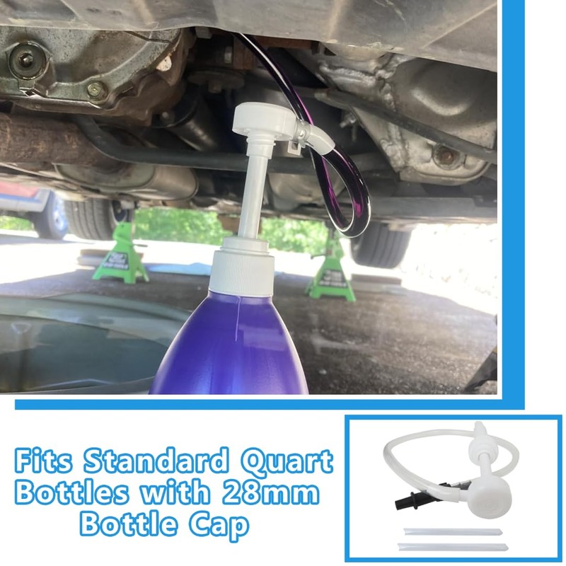 Fluid Pump for Standard Quart Bottles | 8CC Per Pump Stroke | 28mm Bottle Cap Compatibility | 17 Inch Flexible Tube for Tight Spaces | Includes Suction Tubes & 3rd Hand Adapter