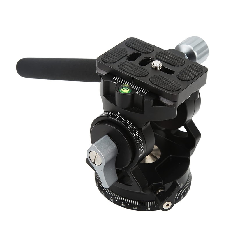 Fluid Tripod Head with Storage Case Plate, Handle, Panoramic Base, Universal Interface, Anodized Aluminum Alloy, Lightweight for DSLR Cameras