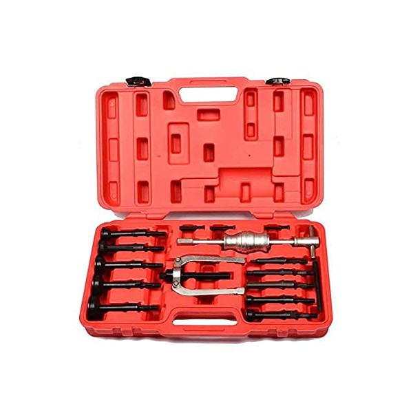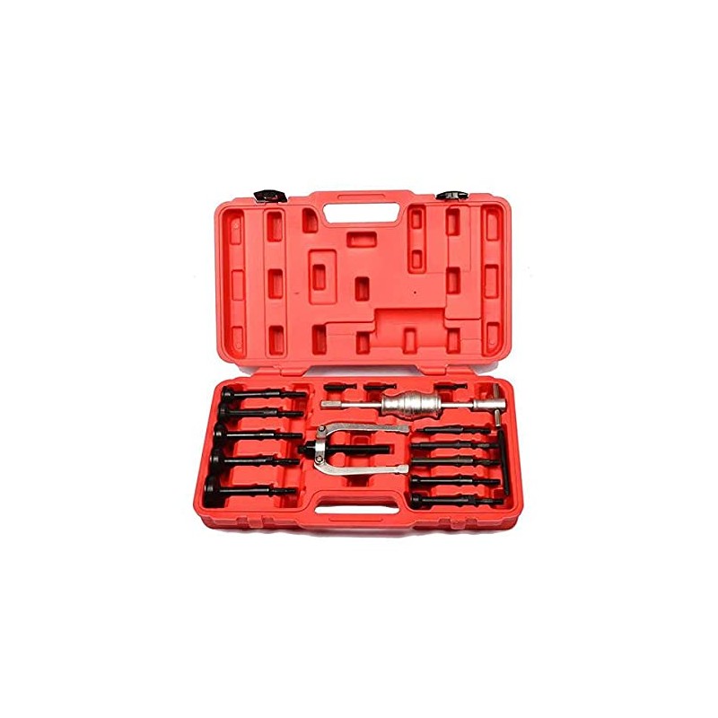 Our 16pcs Blind Hole Pilot Internal Extractor/Remover Bearing Puller Set is designed for removal of Pilot Bushes Bearings etc. It forms blind housings. Made of chrome and steel, this tool set is sturdy and reliable. Moreover, with the rust-proof treatment in the surface, this tool set will serve you a long time. Besides, the tool set is for both the professional and DIY use. It comes with a red case, which is convenient to store and carry. Do not hesitate to buy one.