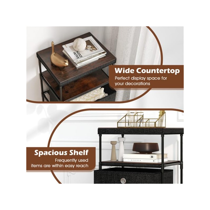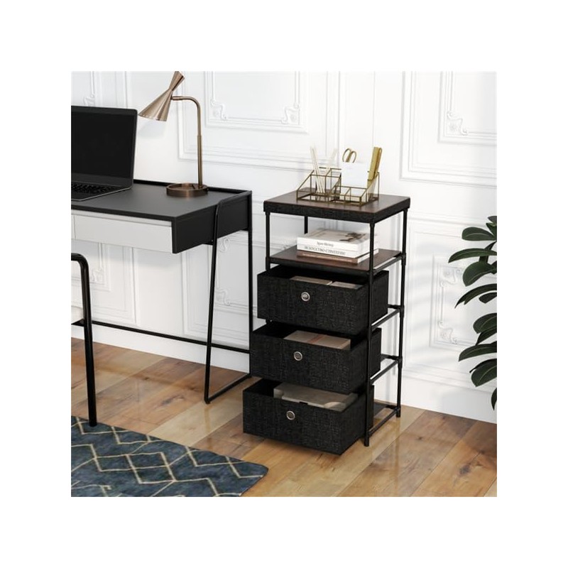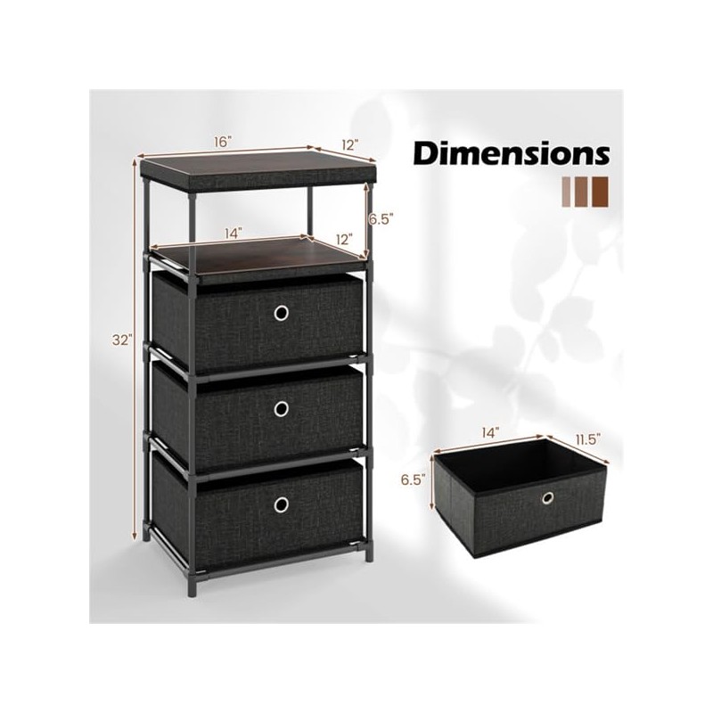 • Industrial Wood Top: The fabric storage tower boasts an industrial wood top that combines delicate aesthetics with great longevity. This high-quality surface is easy to maintain, ensuring it stays in pristine condition for years to come.
