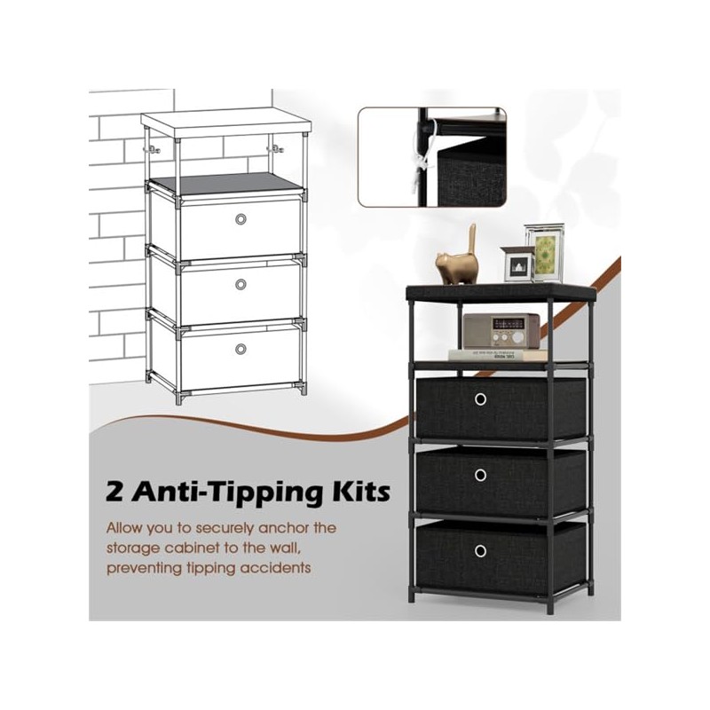 2. Sturdy and Stable Structure: Built with robust metal tubes, the fabric storage cabinet ensures a strong structure that can withstand daily use. Moreover, it comes with dual anti-tipping kits that highly promote overall stability.