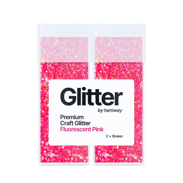 Fluorescent Pink Twin Pack Glitter, 2 x Chunky 130G/4.58OZ Craft Glitter Shakers, Craft Glitter for Resin, Metallic Iridescent Sequin Flake Bulk, Glitter for Makeup Body, Tumblers Glitter