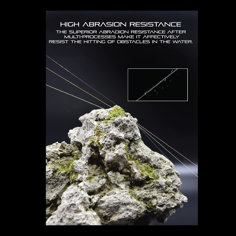 - Very high tensile strength, both linear and knots, the only monofilament available on the market with low stretch and high technical characteristics. The production system of this fluorocarbon makes the line virtually waterproof, which means that unlike many other conventional lines, this monofilament line maintains its full strength even when wet. High abrasion resistance monofilament.