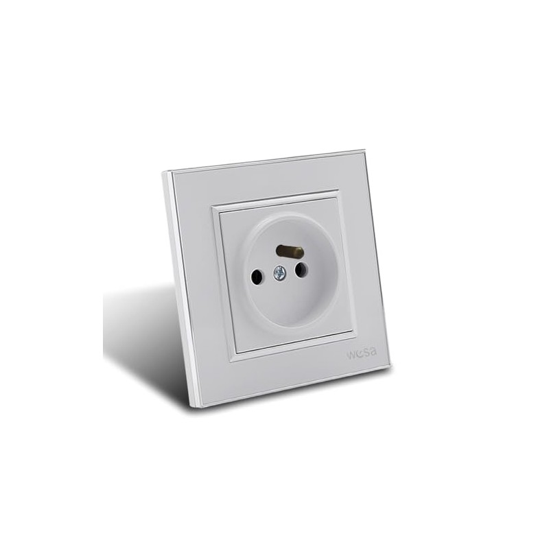 Flush Wall Socket, Standard Socket, Internal Wall Socket, 250V AC 16A, Grounded French Plug, White Acrylic