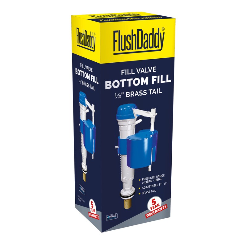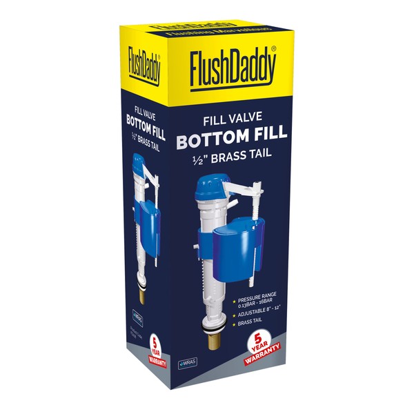 FLUSHDADDY NJ208 Bottom Entry Anti Syphon Adjustable Fill Valve with 0.5-Inch Brass Tail,