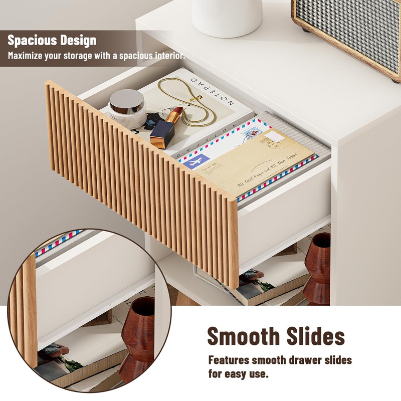 Fluted Nightstand, Modern Bedside Table with Storage Drawers and Open Wood Shelf, Night Stand with Solid Wood Legs, End Tables Side Tables for Living Room, Bedroom