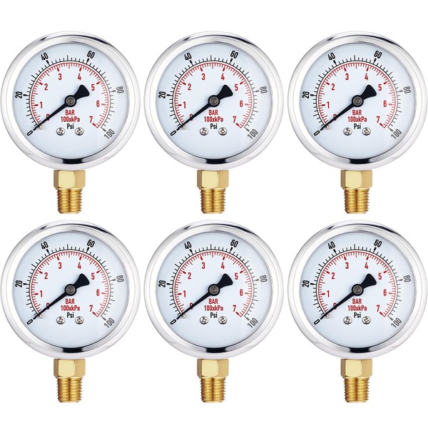• Sufficient Quantity: you will receive 6 pcs 0-100psi stainless steel low pressure gauge, 1/4 npt lower mount waterproof pressure gauge, with enough quantity to meet your different usage needs; Such as water, oil pressure test; Compatible with portable air compressor, water pump, well pump, tank, pipe, espresso and etc
