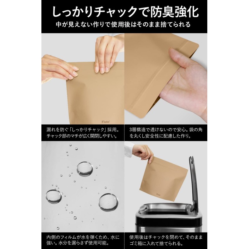 Fluto Strong Odor Resistant Bags, Zippered, Sanitary Box, Disposable Deodorizing Bags, Trash Bags, Medium, Natural, Pack of 30