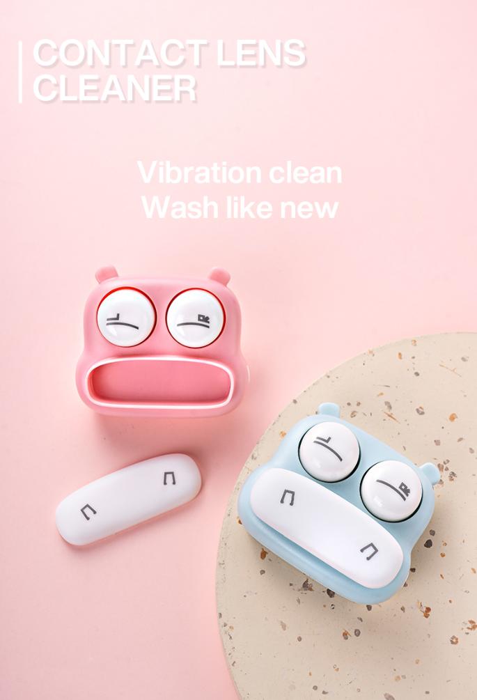 Cartoon hippopotamus contact lens case portable unisex companion box ultrasonic electric silent beauty lens cleaning box