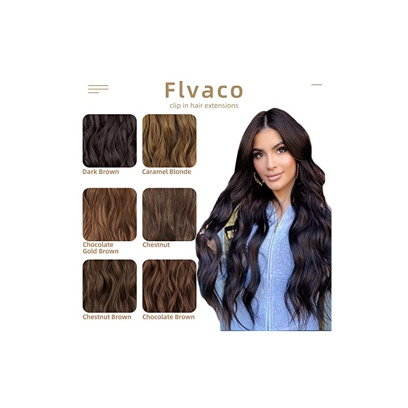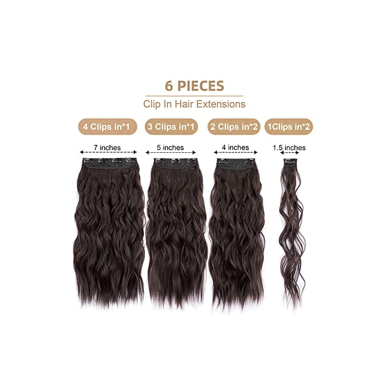 Flvaco Clip In Hair Extensions 20 Inch 6PCS Long Synthetic Dark Brown Thick Long Wavy Clip Ins Hair Extension Double Weft Hairpieces Extensions Full Head For Women(230G,Dark Brown)