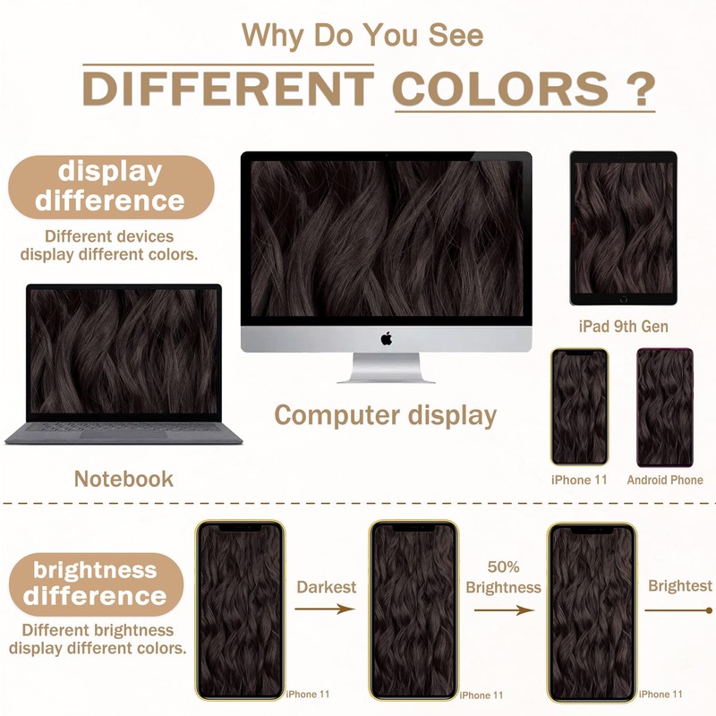 - 【Please note】-- Please Don't Worry, It's normal if some hair fall off when your first use because of the Hair Extensions is sewn by hand.There will be color difference due to technology, display, equipment, light, environment etc., please refer to the actual product.