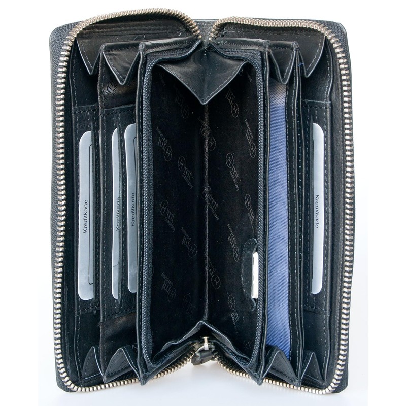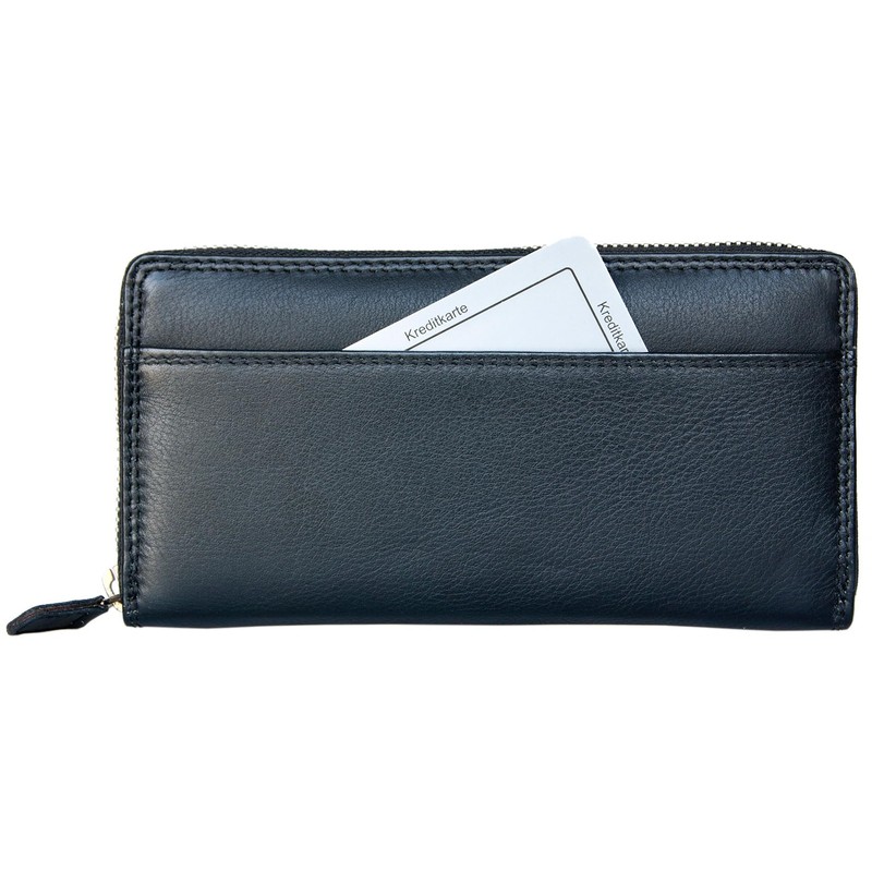 FLW Ladies Black Full Zip Soft Leather Wallet with Privacy (RFID), black, Standard size, penalty
