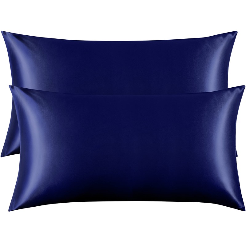 FLXXIE 2 Pack Satin Pillowcases for Hair and Skin, Luxury Soft King (20x40 Inches) Silky Pillow Cases with Envelope Closure, Navy Blue