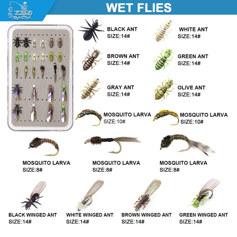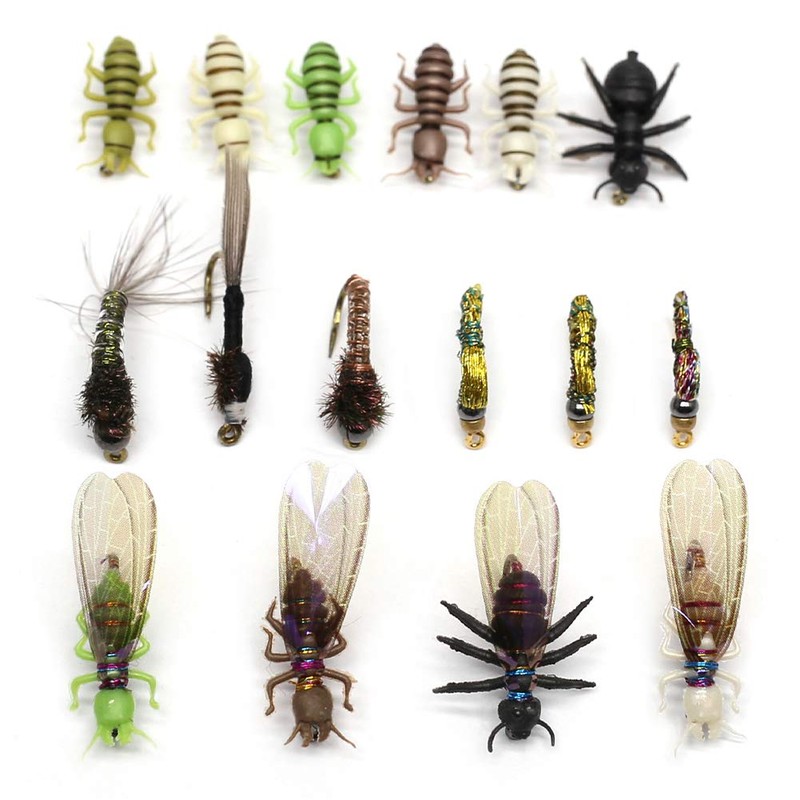 Fly Fishing Flies Realistic Dry Wet Nymph Trout Flies Hand Tie Lures Kits 12/26/48 Pcs (6-Ant kit 26 pcs)