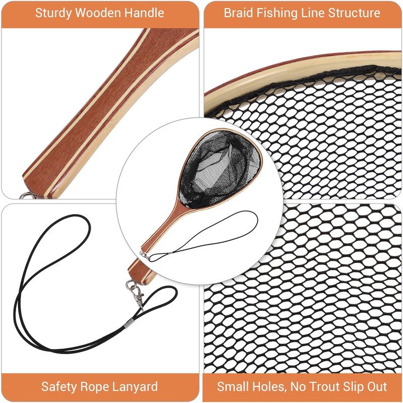 • Durable Construction: Crafted with a sturdy wooden handle and a rubber-coated net, this trout net ensures longevity and resistance to wear and tear.
