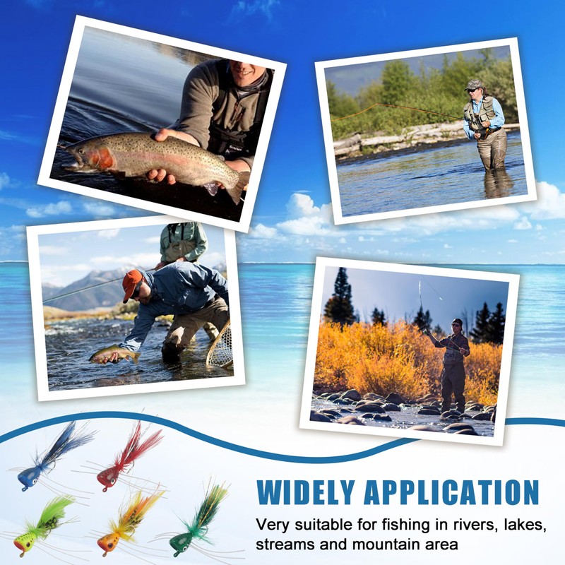 - 🎣【Easy to Use】Popper fly fishing lure is one of the most effective topwater flies, that offer exciting sight fly fishing experiences. The small popper flies set is a must have for both fly fishing with fly rod, or casting by spinning rod with a bomb float. Quantity: 10pcs 5 color dry fly poppers in box.