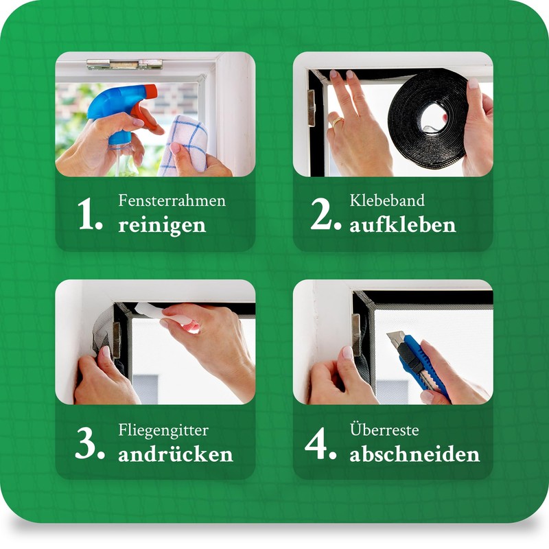 The fly screen set can be attached to the inner frame of a window by simply mounting without drilling or screws. With the insect protection you can protect yourself in the apartment from various insects or vermin such as flies, mosquitoes, bees, wasps, bumblebees or spiders.