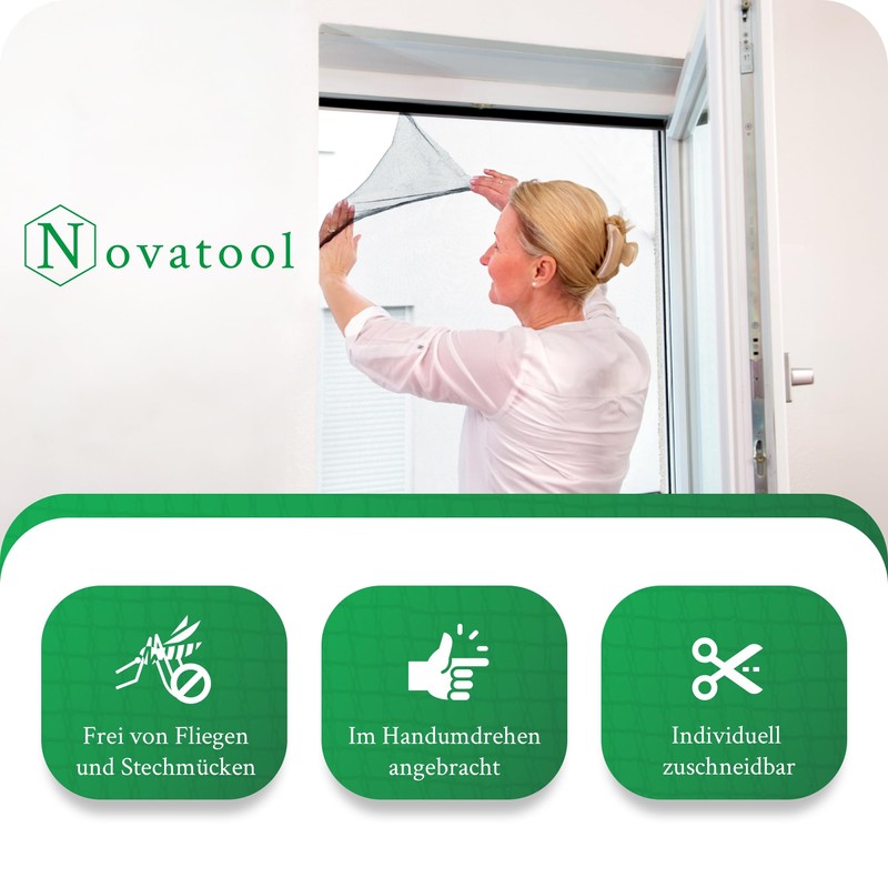 - Box contents: You will receive 2 x fly screen set from Novatool. The pack of the fly net contains a fastening strap and a cutter knife.