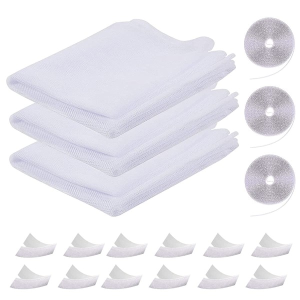 Fly Screen Window, Mosquito Fly Net, Mosquito Net, Window, Pack of 3, 150 x 200 cm, Window Mosquito Net, White, Window Net, Fly Net