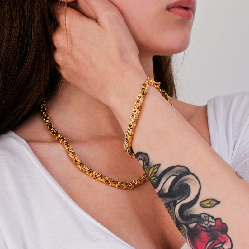 Fly Style Byzantine Byzantine Chain Gold Stainless Steel Men's Necklace 18 Carat Gold-Plated Chain, Stainless Steel