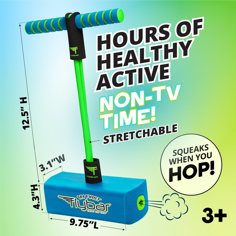 • Boing, boing, squeak! The My First Flybar foam pogo stick is hours of healthy, bouncy fun. Crafted from durable foam, this is an ideal first pogo stick for kids; each jump makes a fun squeaky sound