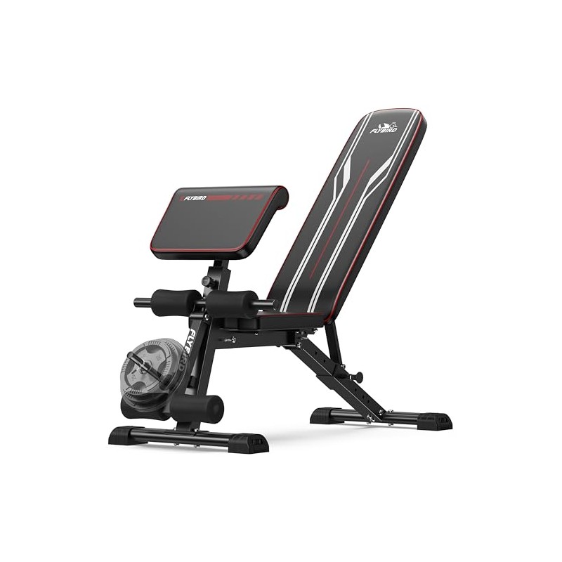 FLYBIRD Adjustable Weight Bench with Leg Extension & Preacher Curl Pad, Full Body Workout Equipment, Foldable Exicise Bench