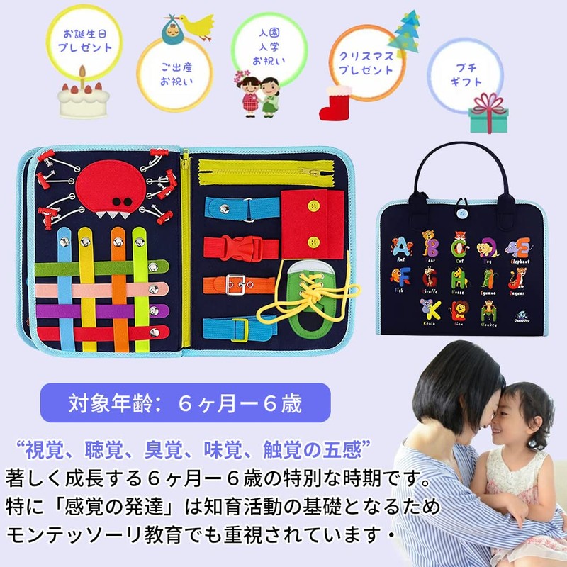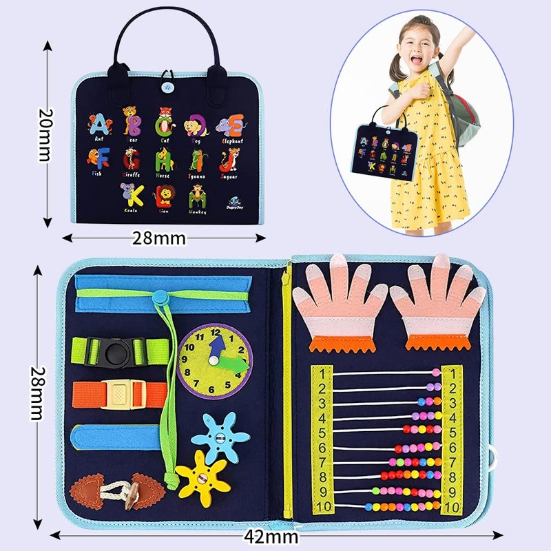 - Montessori educational toy that will keep your child occupied This educational toy is called Montessori that can be played with 18 different buttons, buckles, shoelaces, and zippers. This toy is commonly used with hanging clasps on clothing, which can stimulate children's intelligence, creativity and develop ability