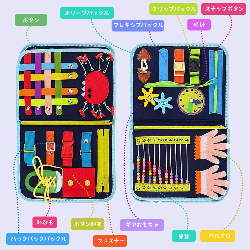 - (Practice for changing clothes) Includes fasteners and buttons commonly used in clothing, which are useful for children to practice changing clothes. They are safe and sturdy, so kids can play with them as well. Perfect for kids ages 1-6 The buttons that require pressure may not be opened at 0-1 years