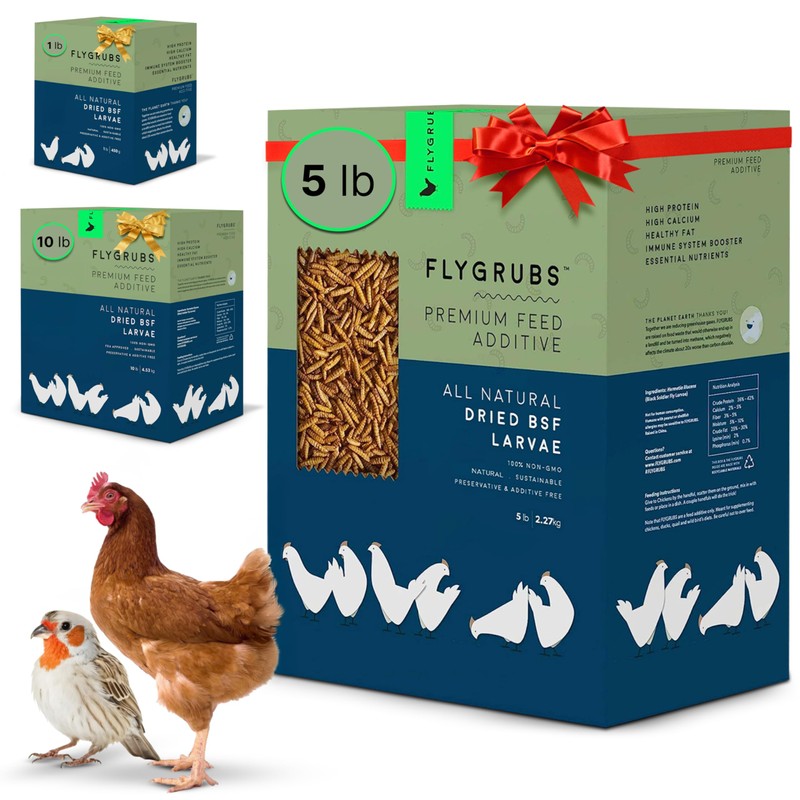 FLYGRUBS FLYGRUBS 5 lb Dried Black Soldier Fly Larvae, Non-GMO High-Calcium Chicken Feed for Healthy Laying Hens, Turkeys, Wild Birds, Ducks, Nutrient-Rich and 85x More Calcium Than Mealworms