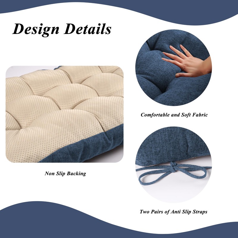 - Double Anti Slip Design: The chair cushion has 2 pairs of long straps, which can firmly fix the cushion on the chair without displacement; The bottom of the seat cushion is also designed with anti slip pads, so you no longer have to worry about the seat cushion slipping.