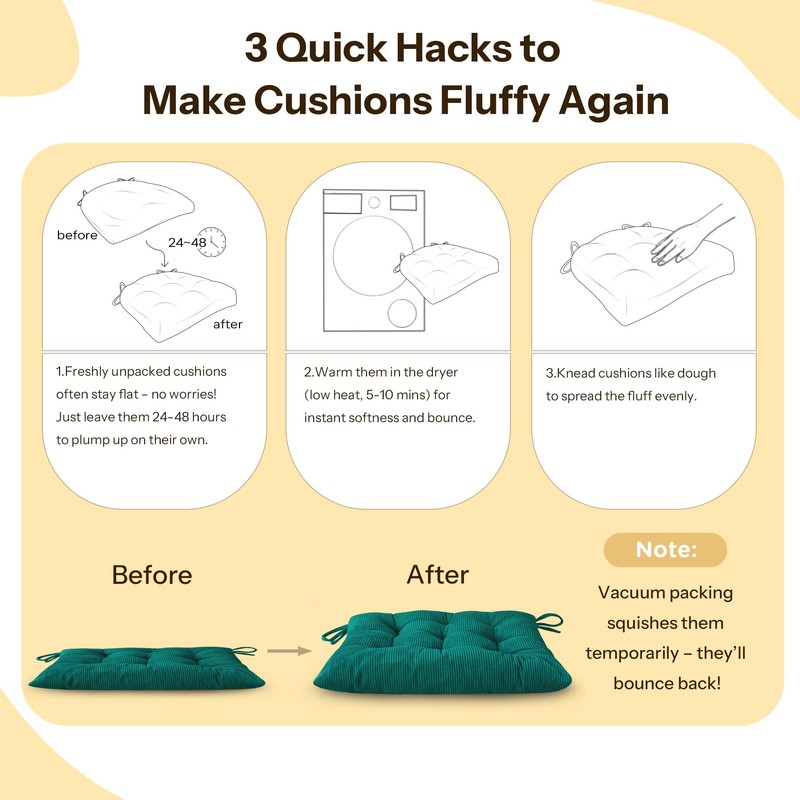- Decorate Your Home: Classic corduroy texture adds a touch of elegance to any space and the various colors can match for rooms with different styles, like modern style, simple style, traditional style. You can use the square chair cushions in the kitchen room, dining room, bedroom, office and so on. Whether it's eating, working, or leisure, it can add a warm atmosphere to the space.