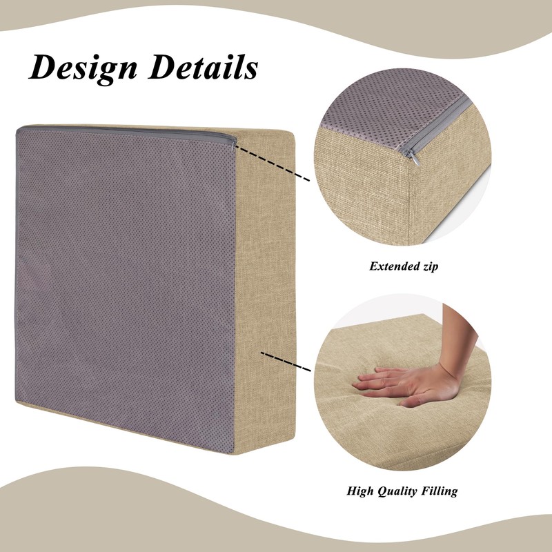- Premium Quality Material: The seat cushion for chair is made of faux linen fabric, which is resistant to dirt and wear.This chair cushion cover is specially equipped with a 1 metre long zip design, which greatly facilitates the removal and cleaning process of the cover, allowing you to easily complete the maintenance work without much effort. In addition, the chair cushion cover is machine washable. After washing, you can also directly put it into the dryer for drying.