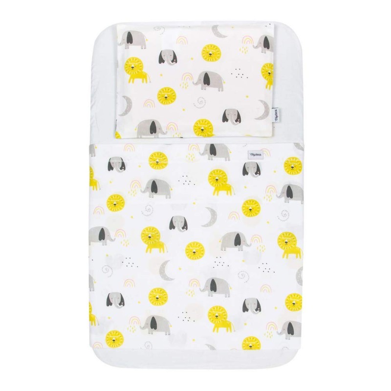 - Complete set with waterproof mattress protector – the fabric bedding set for baby cribs includes a feature in the FlyIdeas signature pattern for newborns. Each set consists of: 1 waterproof mattress protector with elastic bands 83 x 50 cm, 1 top sheet 80-110 cm, 1 fitted sheet 50 x 83 cm and 1 pillowcase 27 x 35 cm - total 4 pieces