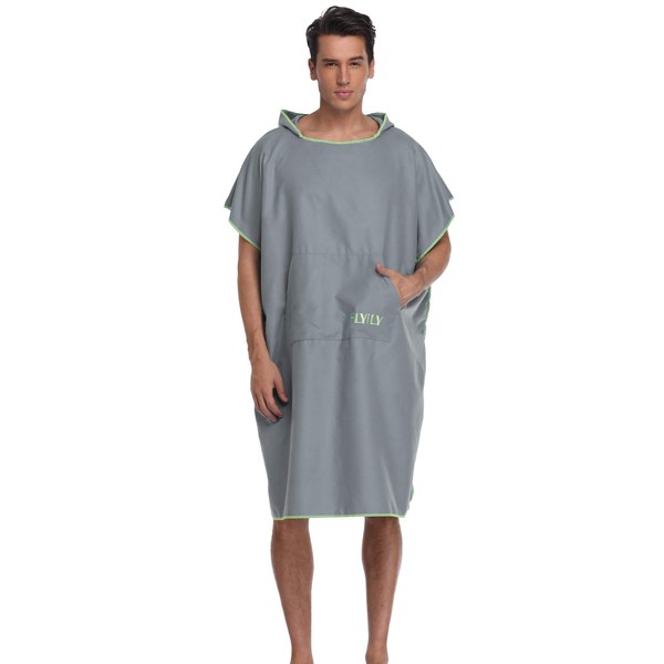 FLYILY Beach Changing Towel Quick-Dry Surf Poncho Robe with Pocket Hooded Wetsuit Adjustable Sleeves Surfing Swimming Bathing(Grey,L)