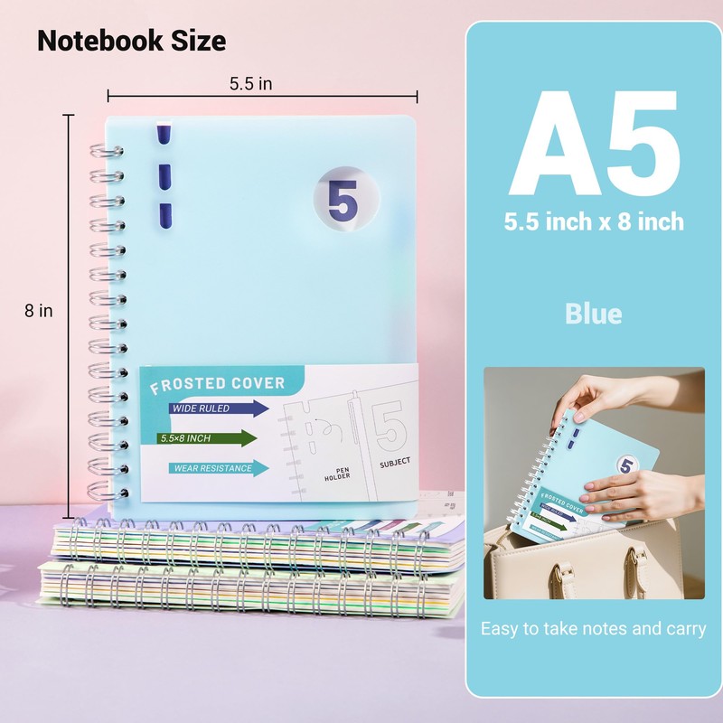 - 【Multi-purpose Portable Notebooks】 This 5 subject notebook is available in purple, pink, teal and green, these notebooks are versatile and suitable for students, school, work and home use. Lightweight and easy to move around as a personal writing diary, reading diary, travel diary,work diary, research diary, note-taking diary and more. Cute notebook available in a variety of beautiful colors and 2 sizes option, a thoughtful gift for friends, family.