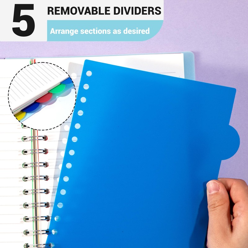 - 【5 Removable Dividers】5 subject notebooks stay organized with 5 removable dividers, allowing you to split your notebook into 1–6 sections effortlessly. Perfect for school, work, or personal projects, these dividers help categorize notes efficiently. Note: We’ve upgraded to freely removable dividers—both old and new versions may ship randomly. Questions? Feel free to reach out!