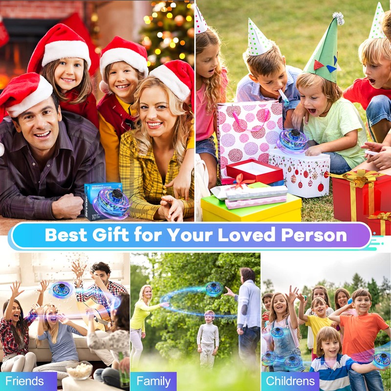 - 🎁【FUN and SIMPLE UFO DRONE FLYING TOY】Turn on the power button of flying toys,hold down the center axis to rotate the wheel to start,then throw it away and fly.Different throwing speeds and angles allow different flight paths,tricks,and high-speed maneuvers.Stop the flying by grabbing the mini drone with your hand.You can have fun with friends, family,colleagues indoors,outdoors,at school and in the office.Hover toy is a popular social game at birthday parties,family gatherings.