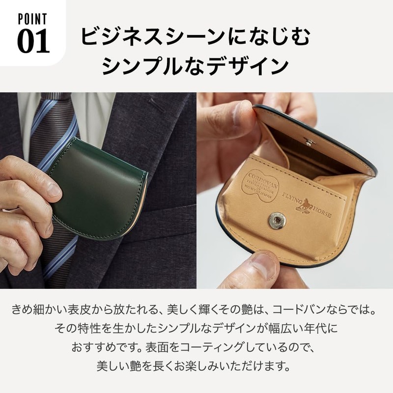希少性と耐久性、表面の美しさに優れた革の王様・コードバンのホースシューコインケース。