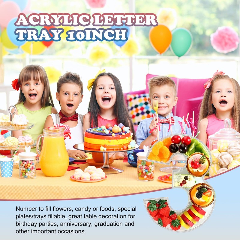 - Creative & Classic: Our candy tray is designed with transparent number shape, creative and classic. A very creative alphabet number shaped form tray Fill able food tray for Birthday Anniversaries / Party / Wedding / Home / Shop use. For treat, grazing charcuterie food container, home or party decorative, easy to be color painted or embellished.