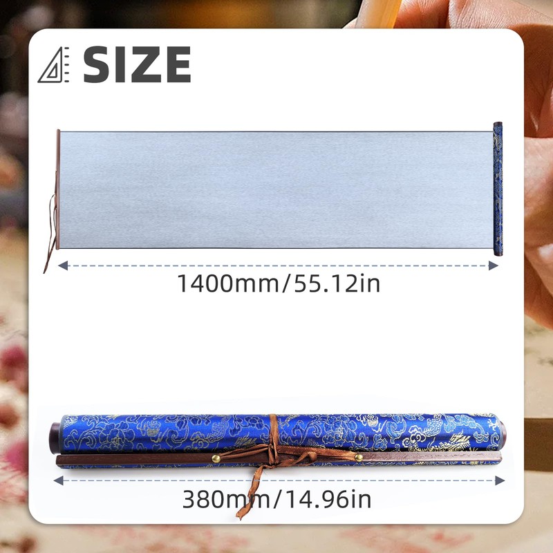- 【Retro Scroll design】Exquisite scroll design, classical and textured, can be rolled up and stored after use, without occupy space, convenient and practical. Chinese writing magic cloth scroll, the size is about 1.4 m x 38 cm / 55.1in x 15in. Specially designed for beginners of Chinese calligraphy, no more ink stain your desk or hands