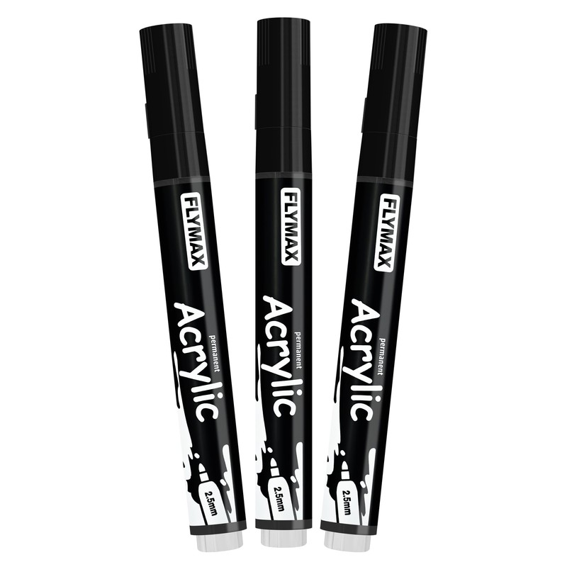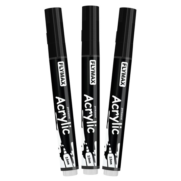 FLYMAX Black Marker Paint Pens - Permanent Marker Pens Black Acrylic Paint Water-Based 2.5mm Medium Tip Waterproof Quick-Drying (3 in 1Pack)