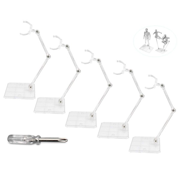 Flymer 5 Pcs Action Figure Display Holder, Transparent Action Display Stand for Doll Model Toy