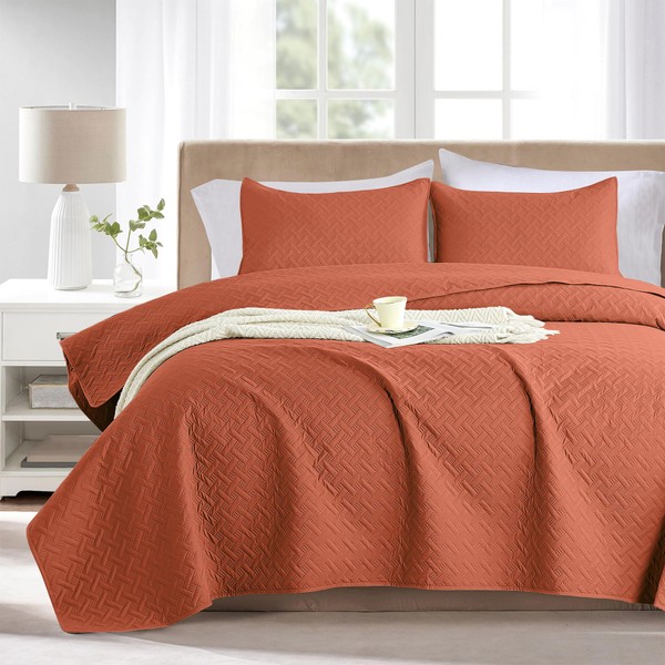 FLYMME King Size Quilt Bedding Set Burnt Orange Lightweight Bedspreads Set,Mo...
