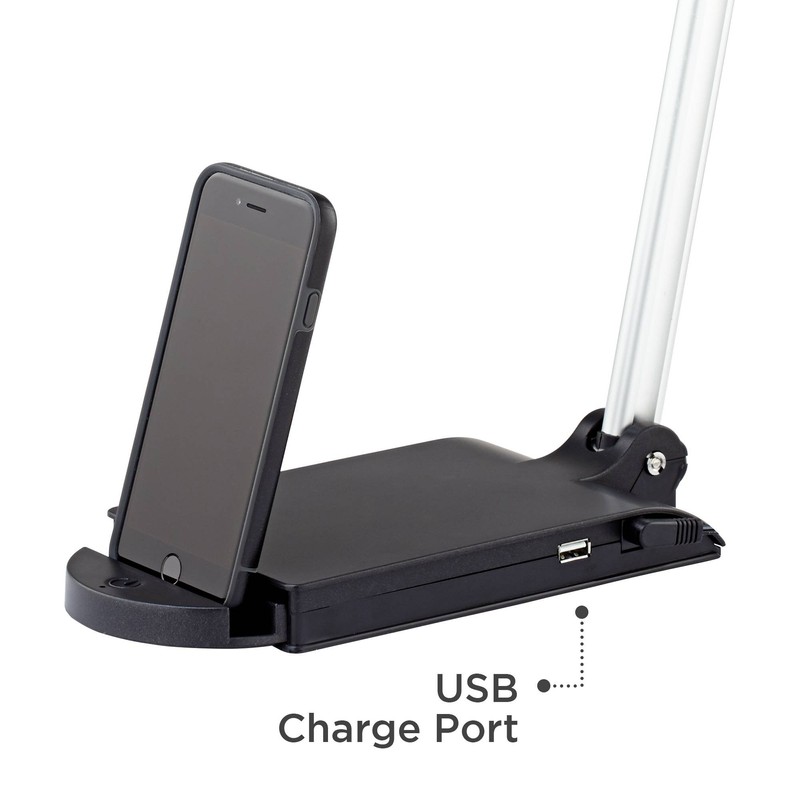 Flynn Modern Task Desk Lamp with USB Charging Port and Phone Cradle LED 25" High Metallic Black and Silver Adjustable Swivel for Bedroom House Bedside Nightstand Home Office - 360 Lighting