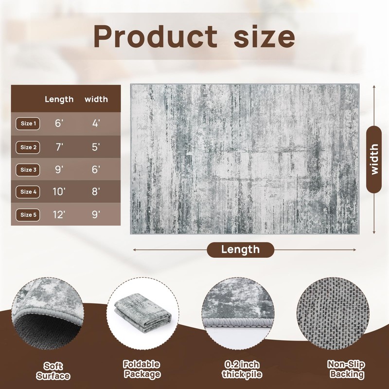 - [Soft Durable Area Rug] - This area rug is made of made of upgraded durable faux wool fibers. It is soft feeling for your feets and quality appearance. The low pile makes it easy for your large area rug to clean and is perfect for kids and pets.