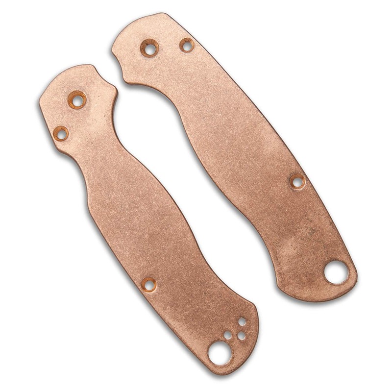 These precision milled scales are a perfect fit to replace the standard G10 scales. The backs have been milled out to receive the nested liners. Includes pocket clip holes for tip-up, right hand carry. We finished these with a unique antique stonewash finish, and no two scales are exactly the same. With the custom copper scales installed, the knife weighs in about 7.15 oz, giving the Paramilitary 2 some real heft. These scales will develop their own unique patina with time and use, make it your own. We can't wait for you to get these in your hands, the quality and finish is top tier!