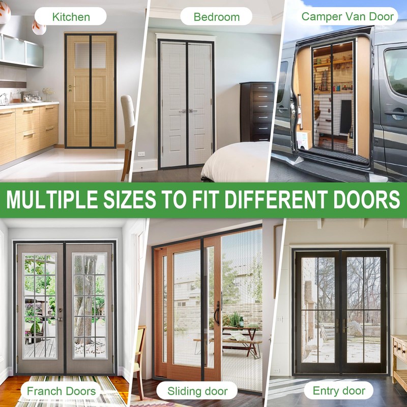 - Universal Fit:The Magnetic Screen Door 40x82inch, is designed to fit most door sizes, fit door size up to 38" x 80". It's perfect for use on patio doors, French doors, sliding doors. This moustiquaire porte patio versatile product is the perfect solution for anyone who wants to enjoy the indoors without the hassle of bugs and insects.