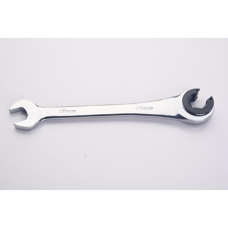 FLZOSPER 17mm Metric Fix Tubing Wrench,Fixed Head Tubing Ratchet Open End Wrench, Ratcheting Fix Combination Wrench Spanner