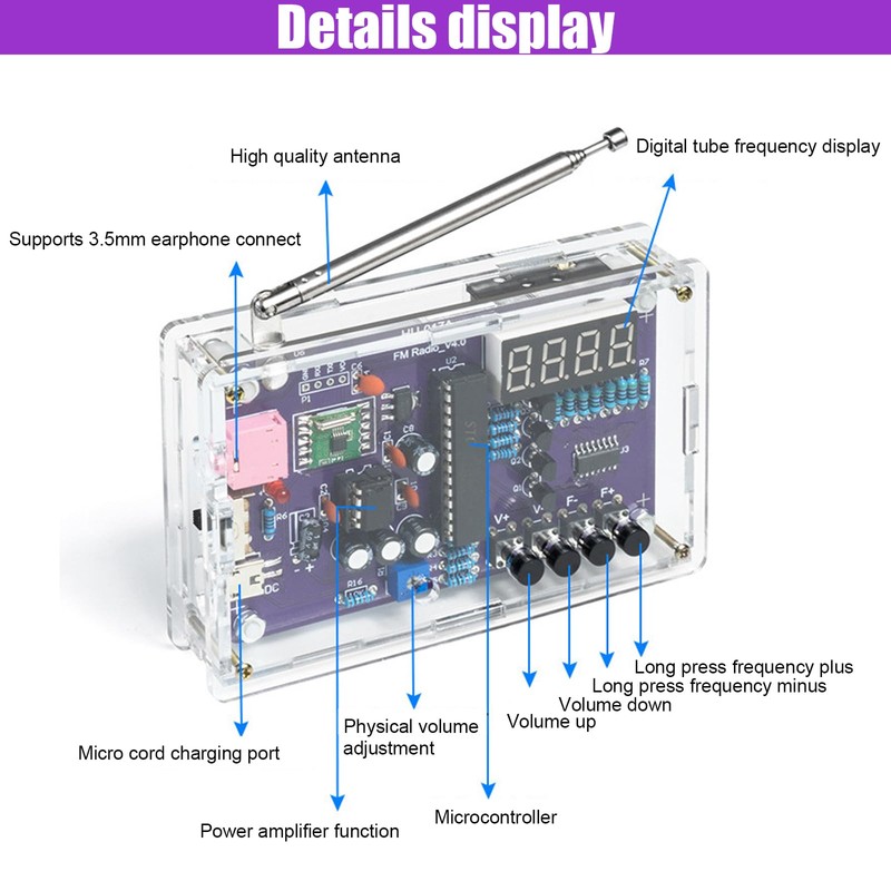 From soldering the resistors and capacitors to connecting the circuit board, you will learn the fundamentals of soldering while assembling FM radio kit. Not only will you gain valuable soldering experience, but you will also end up with a functional and enjoyable radio to listen to.