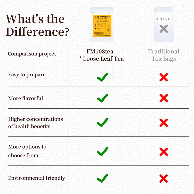 - LOOSE LEAF TEA EXPERIENCE: Using traditional Chinese tea-making techniques,premium ingredients that you can see, smell, and taste; ditch the single-use herbal tea bags; discover the loose leaf difference.